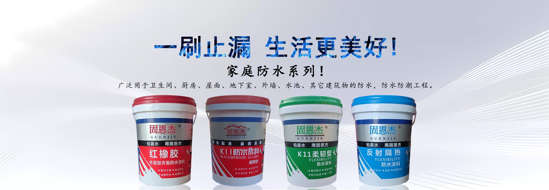 廣州固恩杰防水建材科技有限公司(簡稱:固恩杰)是集研發(fā)、生產(chǎn)、銷售于一體的高新技術(shù)建筑材料制造企業(yè),與多個(gè)國際知名化工企業(yè)建立良好穩(wěn)定的戰(zhàn)略合作伙伴關(guān)系,公司目標(biāo)是打造中國最具競爭力的防水品牌 。公司產(chǎn)品具有質(zhì)量穩(wěn)定可靠、耐久性好、綠色環(huán)保、對人體健康無毒害作用、使用方便、粘結(jié)力強(qiáng)、耐候性好、提高工程質(zhì)量、降低工程造價(jià)等優(yōu)勢,是提升人們居住環(huán)境質(zhì)量的換代產(chǎn)品,廣泛應(yīng)用于新舊商住樓,賓館會(huì)所、辦公樓寓的室內(nèi)外裝修工程。